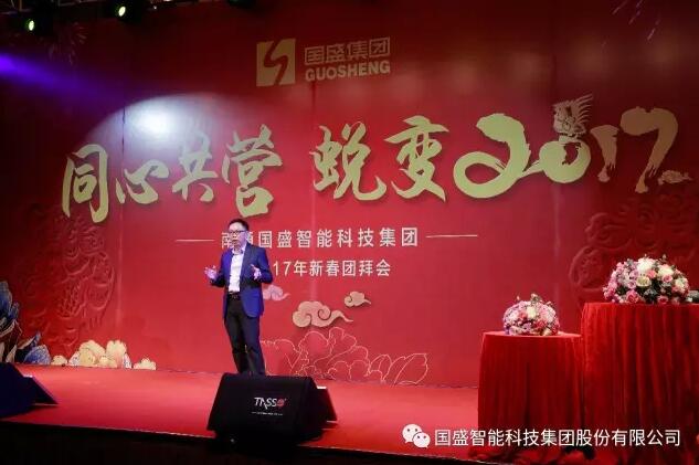 團拜會的主題是“同心共營,蛻變2017”。古人云:千人同心,可得千人之力;萬人異心,則無一人可用。2016年,對于機床行業而言,是動蕩的、不平凡的一年。但是在全體員工、員工家屬、客戶、合作伙伴的同心共營下,國盛集團的業績突飛猛進,呈上了滿意的答卷。2017年,我們將在品牌營銷、技術創新、內控管理上不斷蛻變,實現新一年業績的騰飛!